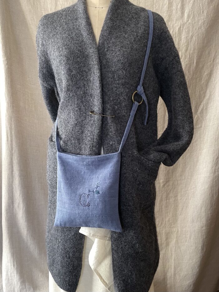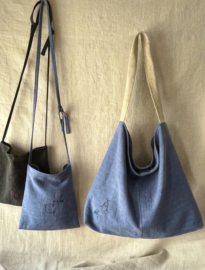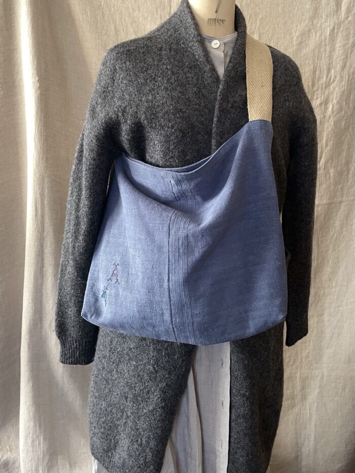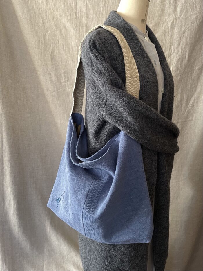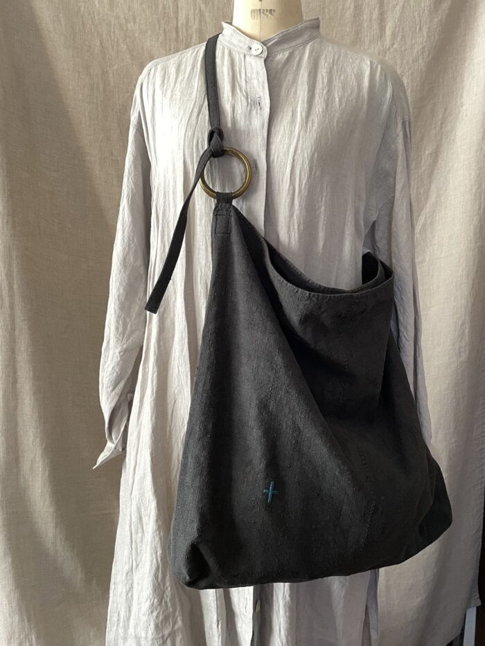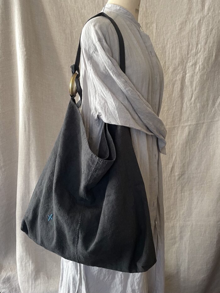 もう一点は、墨色アンティークリネンのバッグ。