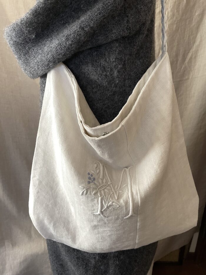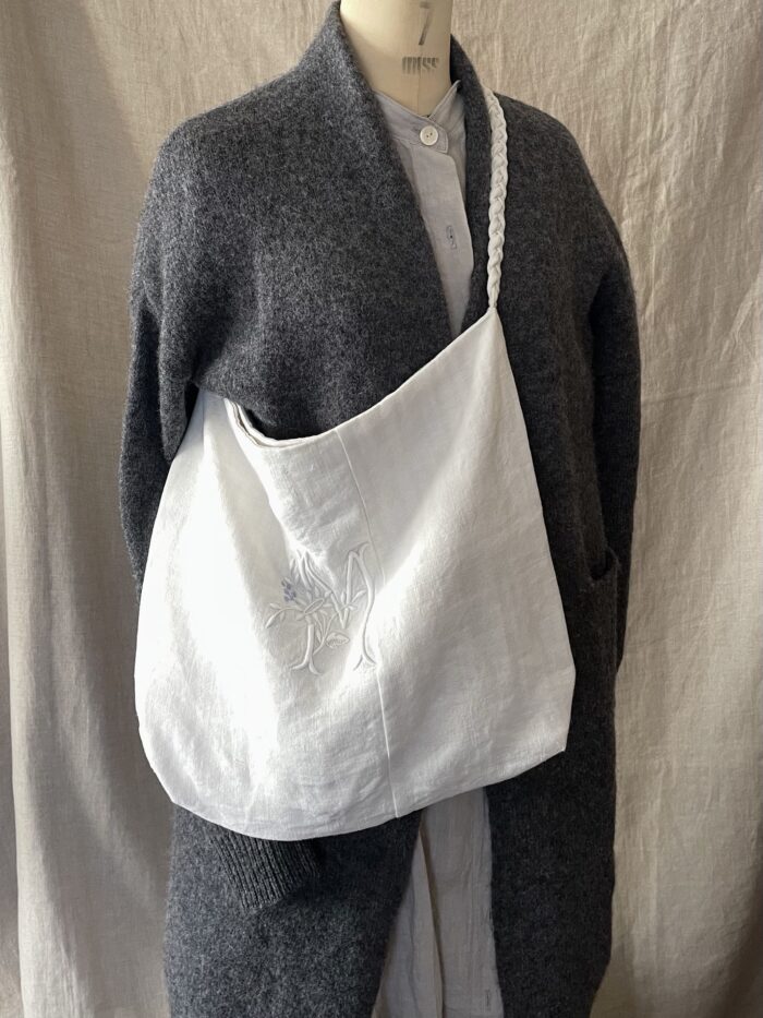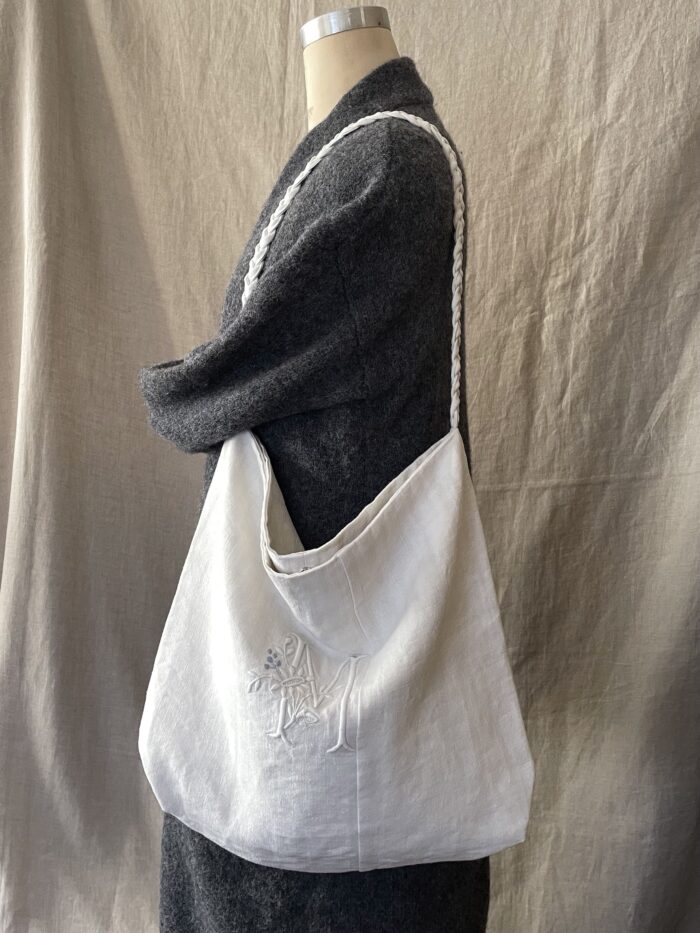 アンティークリネンの佇まいを最大限に大切にしてバッグに仕立てました。